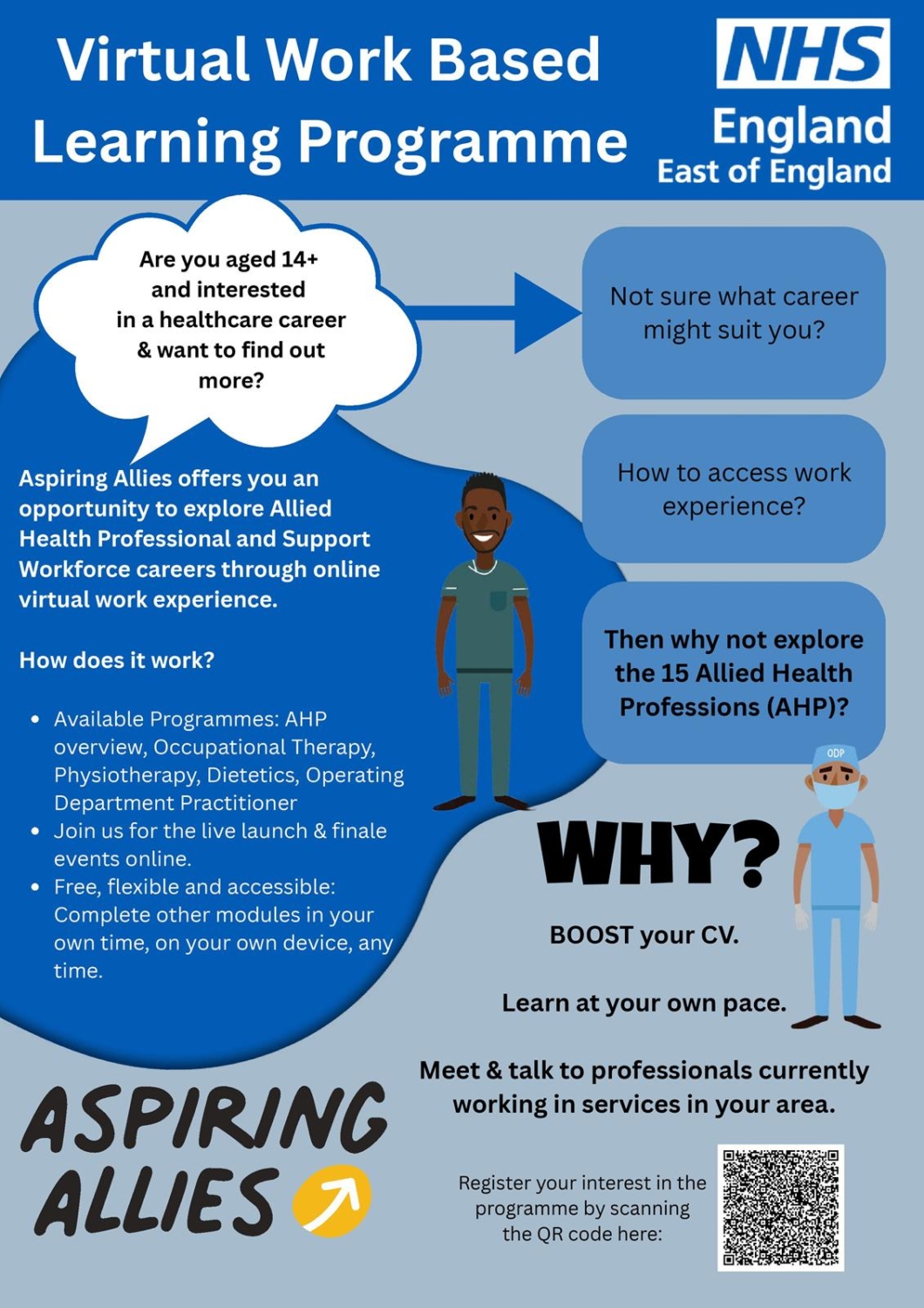 You are invited to take part in a fully funded Allied Health Professions virtual work experience programme – a fantastic chance to explore Allied Health Profession – AHP careers, build insight and take a step toward a future in health care.